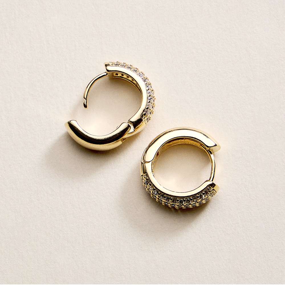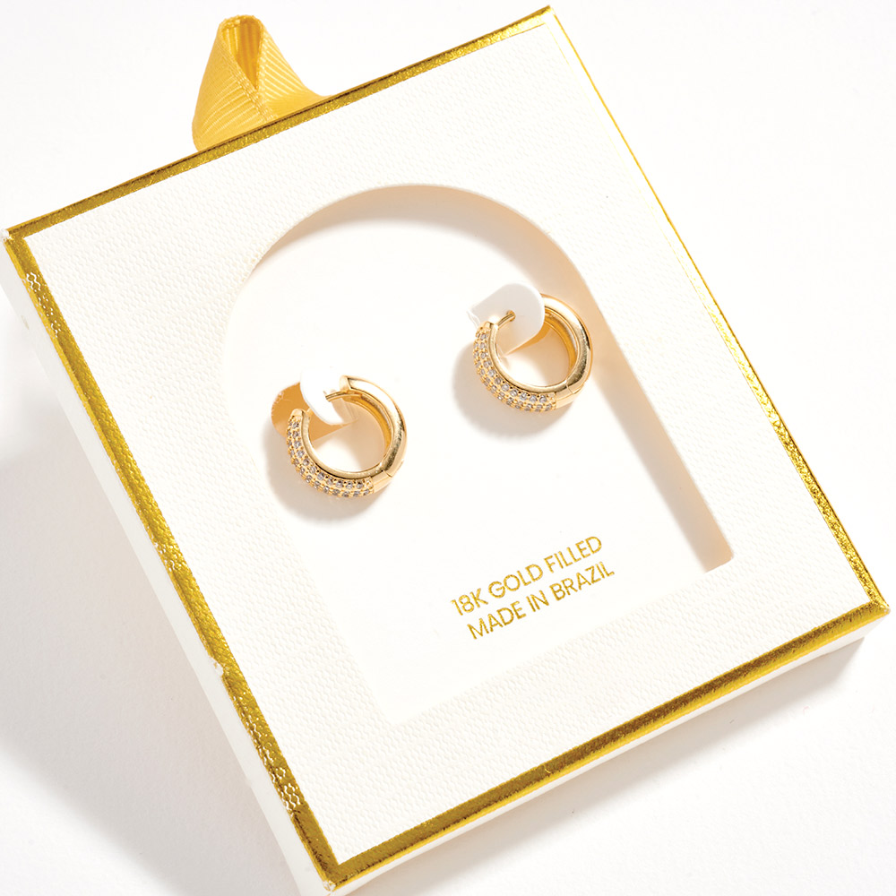 18K Gold Filled CZ Pave Huggie Hoop Earrings