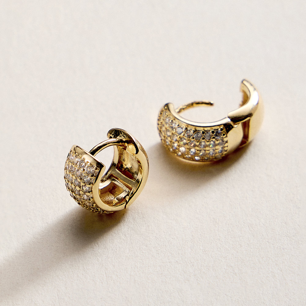 18K Gold Filled CZ Pave Mini Huggie Hoop Earrings
