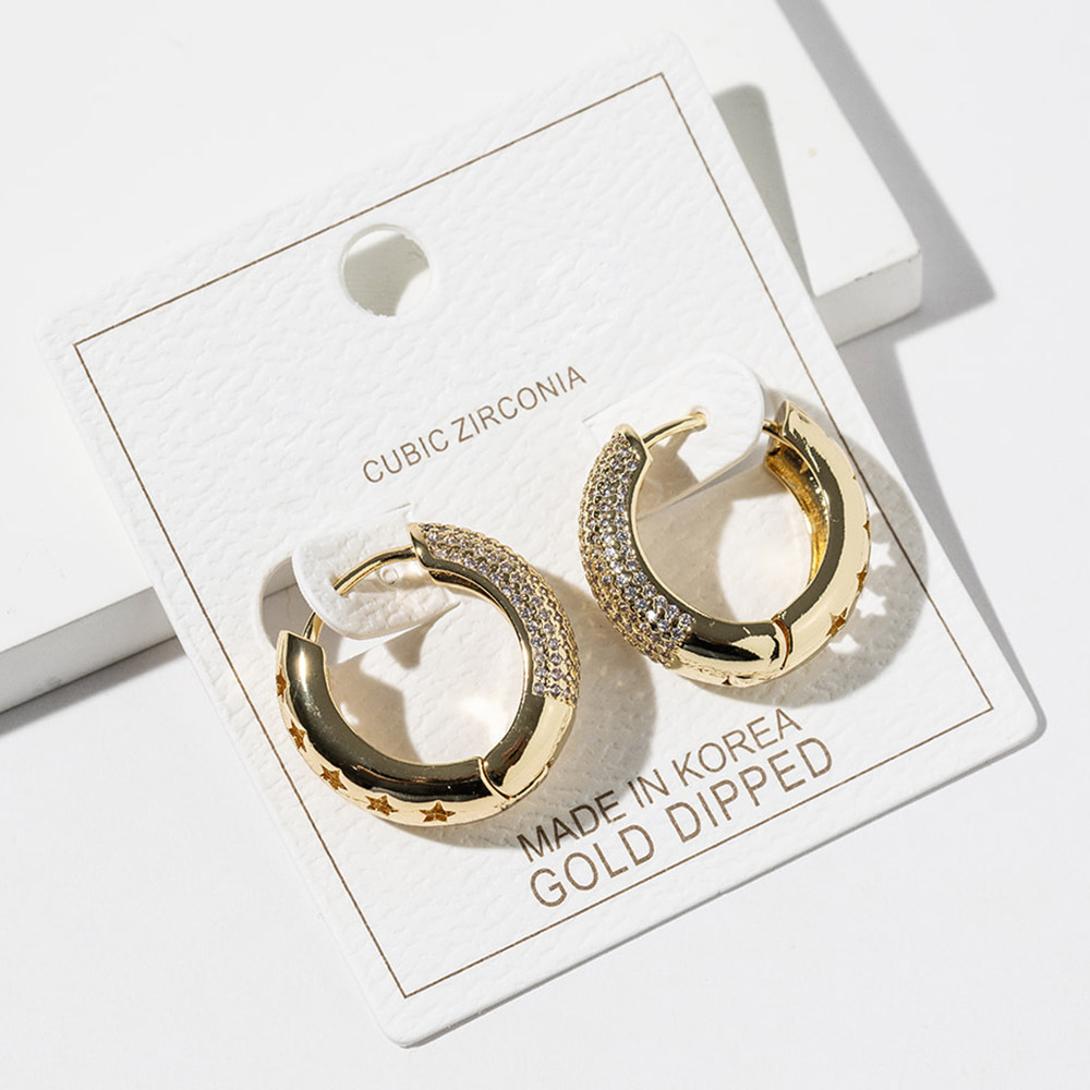 Gold Dipped CZ Stone Paved Huggie Hoop Earrings