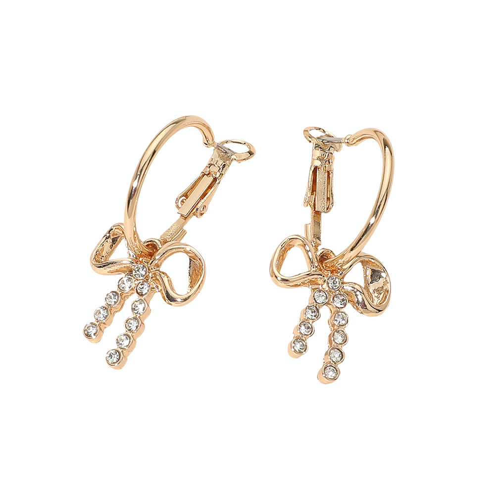 • Charming bow-shaped hoop earrings accented with sparkling details for a playful yet elegant look. Designed with a secure clasp for comfortable wear. Ideal for everyday styling, gifting, boutiques, and seasonal displays. A versatile accessory that adds a feminine touch to any outfit.