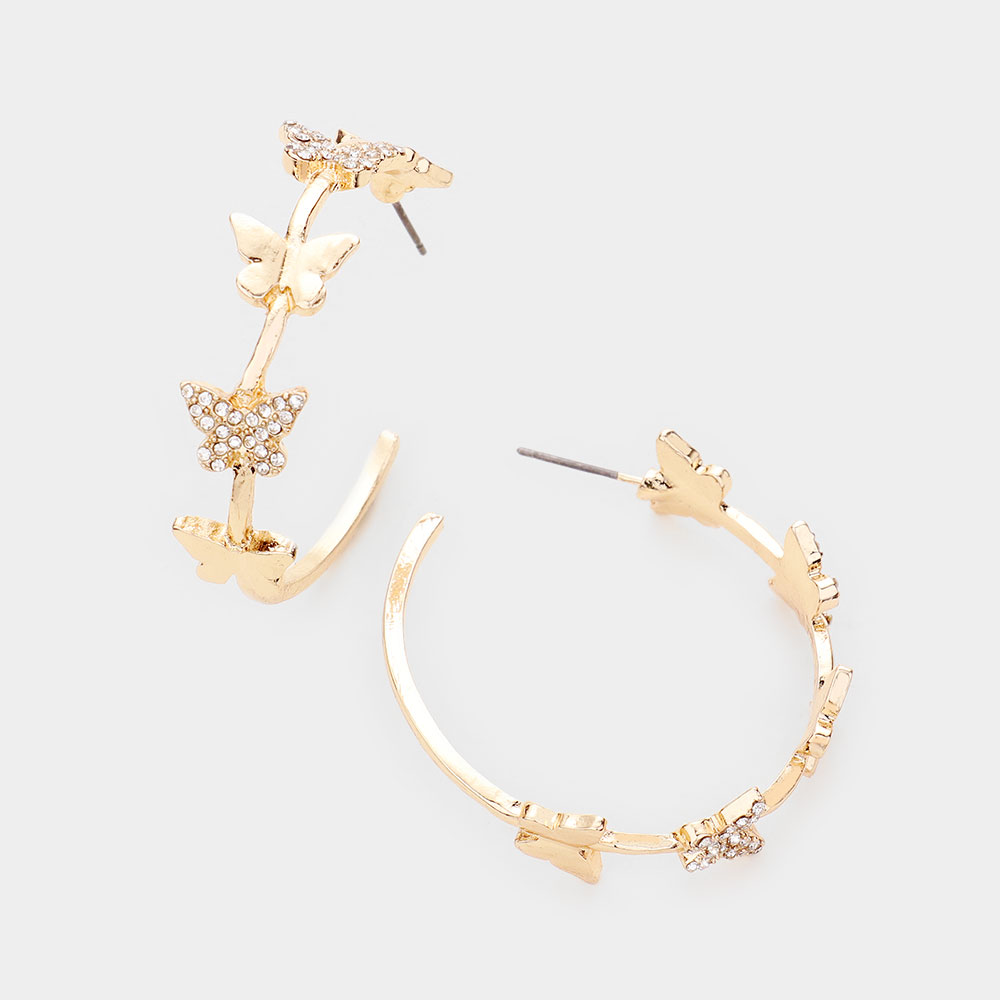 Rhinestone Embellished Butterfly Accented Half Hoop Earrings