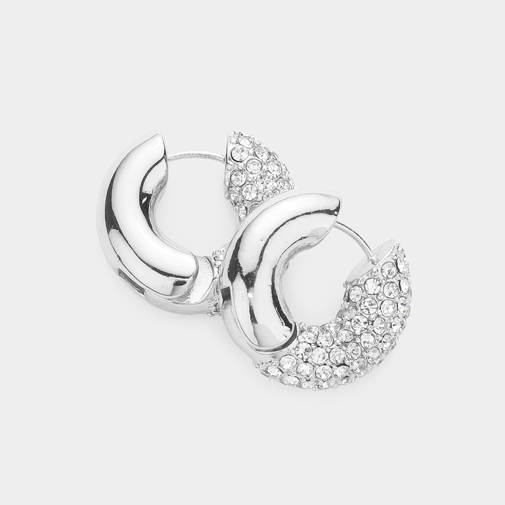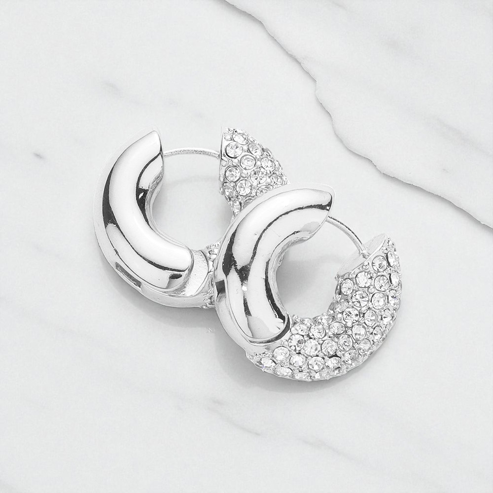 Silver Dipped Rhinestone Trim Quatrefoil Pendant Necklace