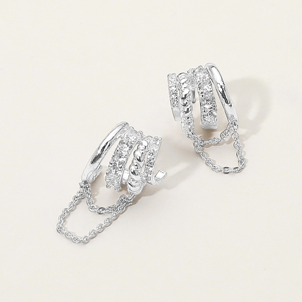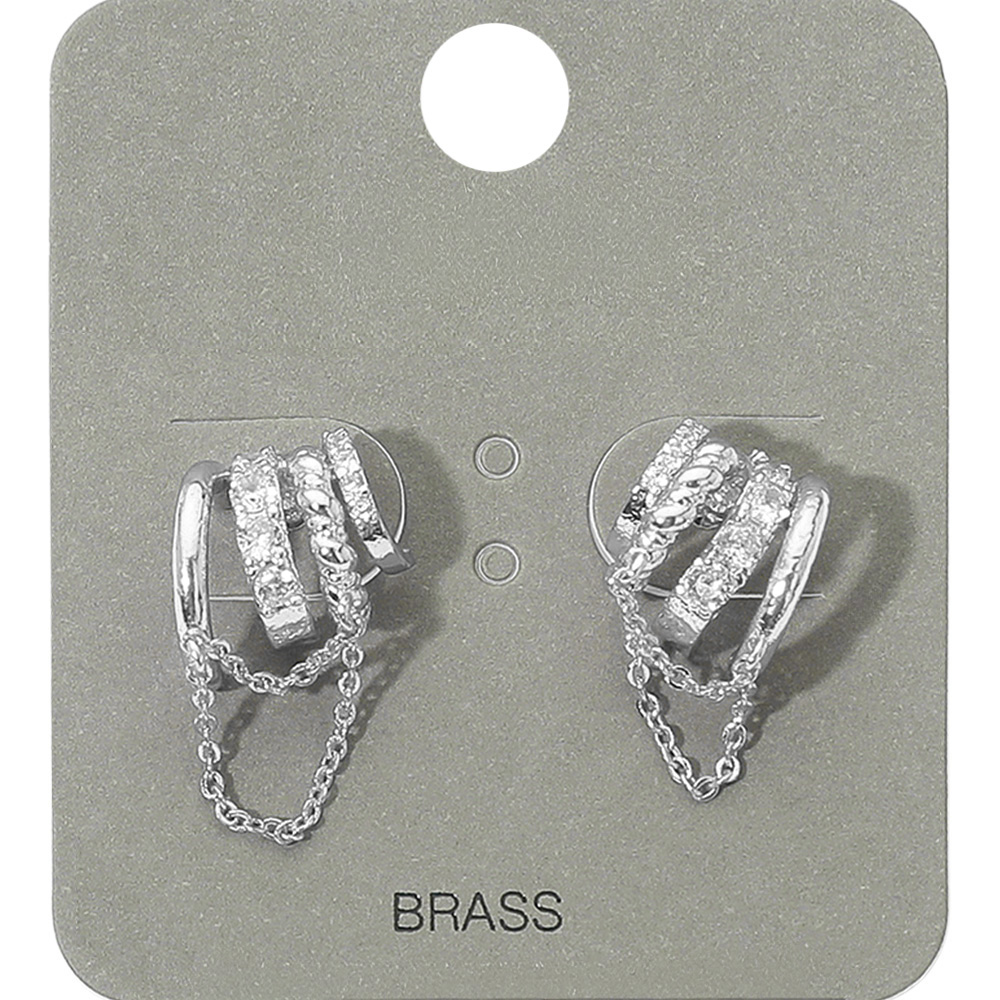 Details • Size : 0.5" X 0.8" • Post Back • Stylish ear cuff earrings designed with layered crystal accents and delicate chain details. A modern accessory that adds sparkle and edge to elevate casual wear, evening outfits, or party looks. • Brass • Lead and Nickel Compliant