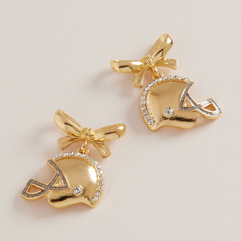 Details • Size : 1" X 1.4" • Titanium Post Back • Playful drop earrings featuring a detailed football helmet charm accented with a bow for spirited, feminine style. Designed to add movement and personality, these earrings are perfect for game day outfits, tailgates, team events, and casual wear, making them a standout choice for fan-inspired boutique accessory collections. • Hypoallergenic • Lead and Nickel Compliant