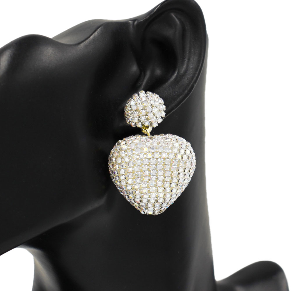 Rhinestone Studded Puffy Heart Drop Statement Earrings