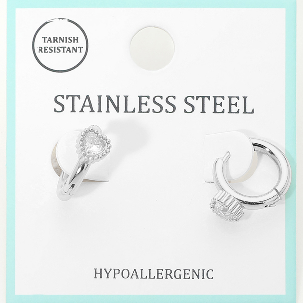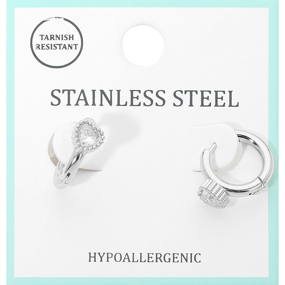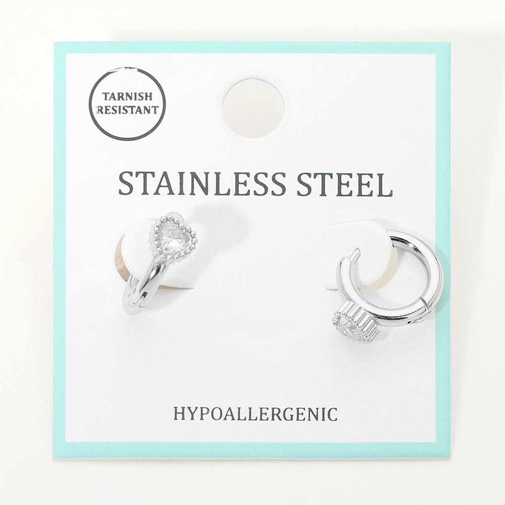 Stainless Steel Heart Stone Accent Mini Huggie Hoop Earrings Stainless Steel Heart Stone Accent Mini Huggie Hoop Earrings Stainless Steel Heart Stone Accent Mini Huggie Hoop Earrings