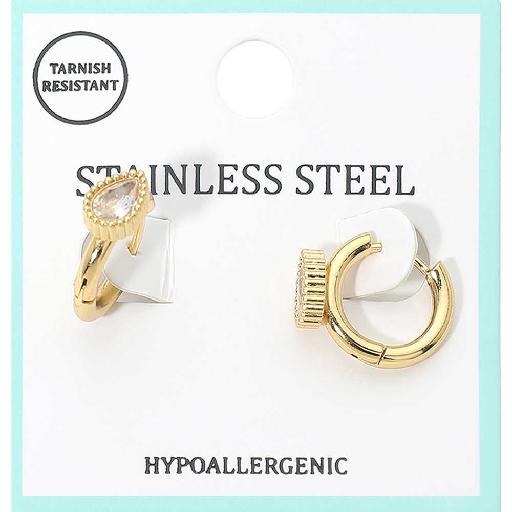 Stainless Steel Teardrop Stone Accent Mini Huggie Hoop Earrings Stainless Steel Teardrop Stone Accent Mini Huggie Hoop Earrings Stainless Steel Teardrop Stone Accent Mini Huggie Hoop Earrings