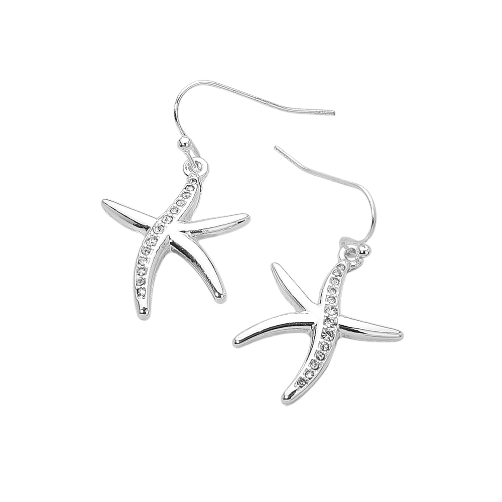 Details • Size : 0.75" X 1.25" • Fish Hook Back • Ocean inspired starfish dangle earrings designed with a graceful hook silhouette that adds movement and charm. A playful yet polished accessory ideal for beach themed styling, summer outfits, vacation looks, and boutique gift assortments seeking nature inspired statement jewelry. • Lead and Nickel Compliant
