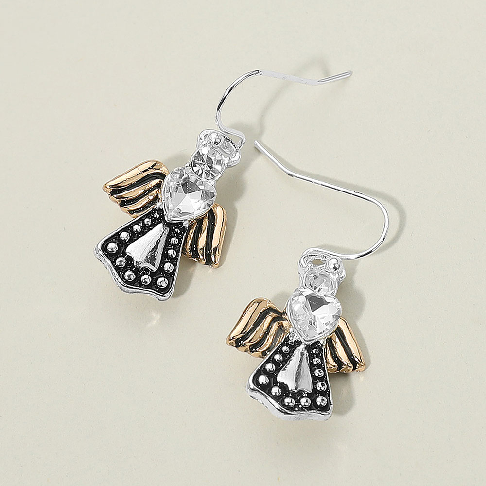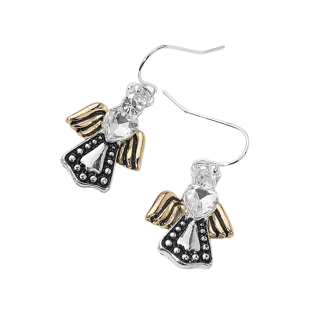 • Shine with grace and faith wearing these angel earrings, beautifully detailed with radiant crystal accents and golden wings. A meaningful symbol of protection and hope, they make a thoughtful gift and a stunning accessory for both everyday wear and special occasions.