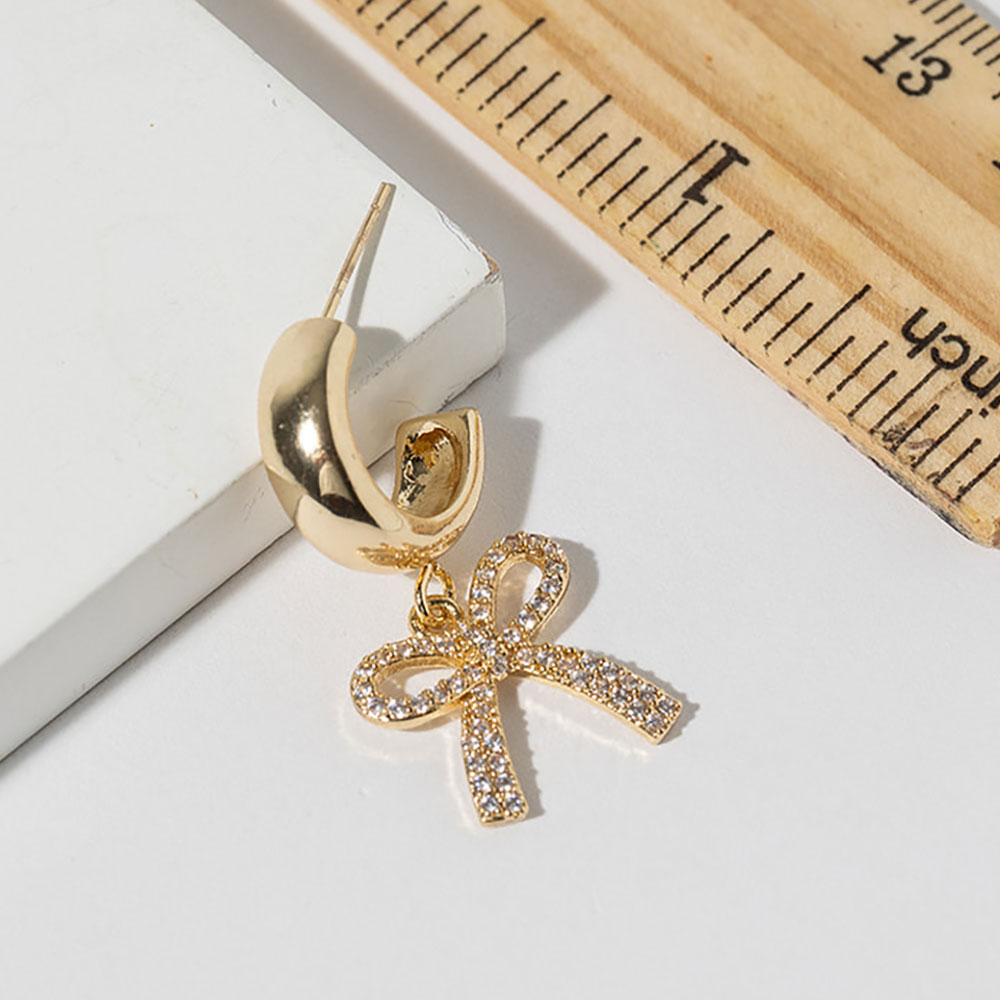 • Stylish crescent hoop earrings finished with a sparkling CZ bow charm that adds graceful movement and feminine appeal. This elegant drop design blends playful detail with a polished silhouette, making it ideal for everyday styling, gifting, and boutique jewelry collections seeking timeless yet trendy accents.
