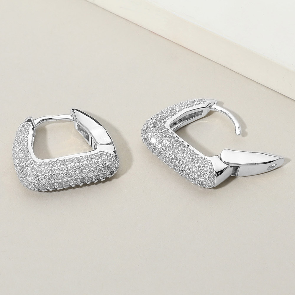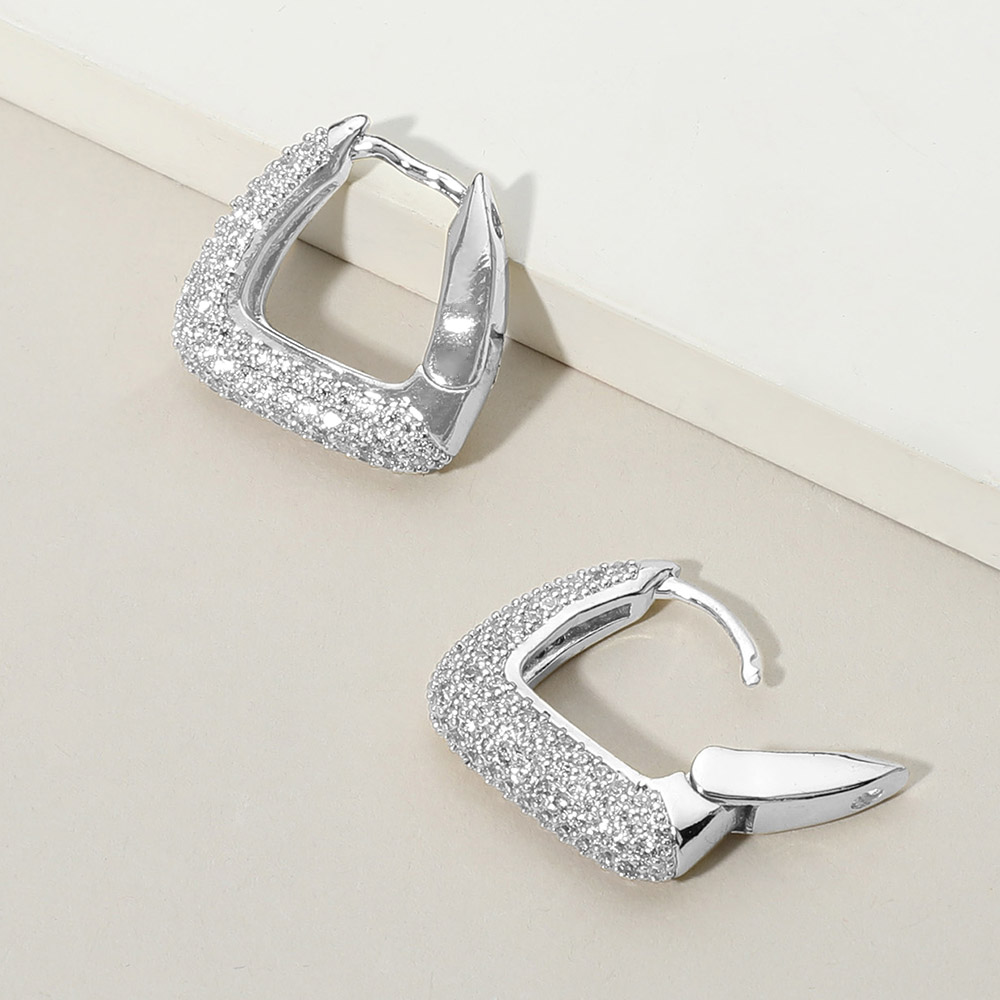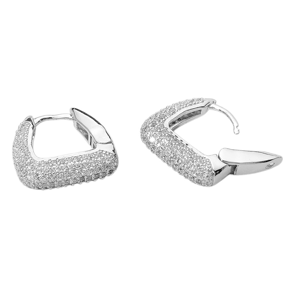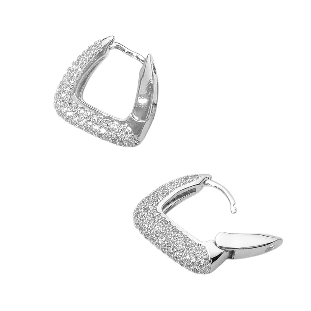 • Enhance your look with these square pavĂ© hoop earrings that blend bold structure with refined sparkle. Their sleek geometric shape and radiant surface bring a touch of modern sophistication to any ensemble, perfect for both elegant and everyday styling.