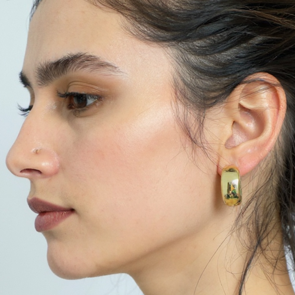 • Trendy chunky huggie hoop earrings designed with a smooth polished finish and bold rounded shape. Comfortable and versatile, these hoops bring effortless style to everyday wear while adding a touch of modern sophistication. A must-have accessory for creating chic, timeless jewelry looks.