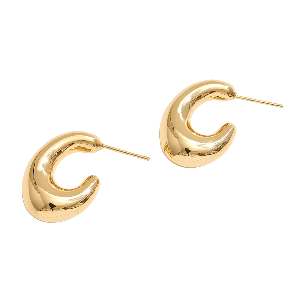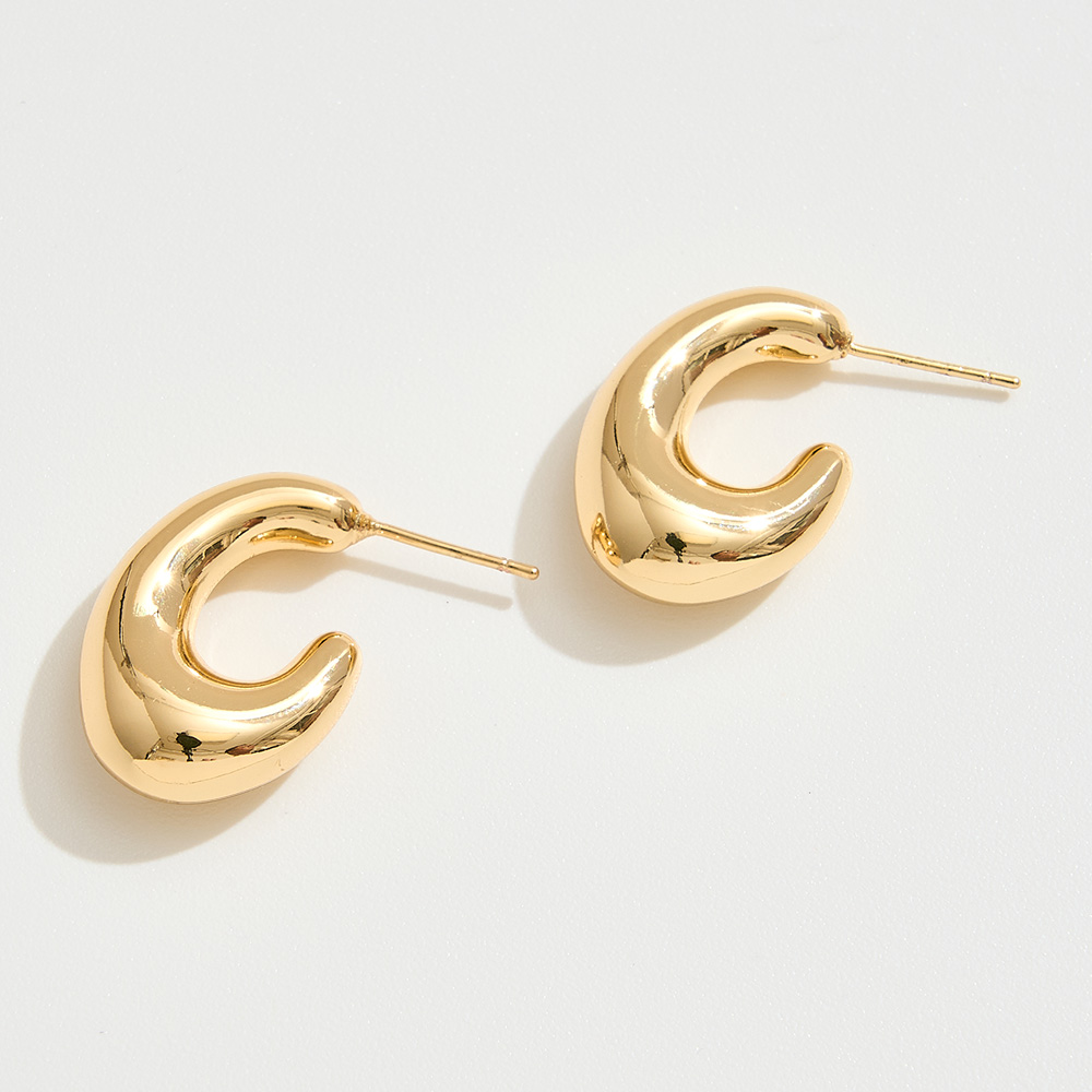 • These sculptural croissant hoop earrings feature a bold, curved silhouette with a smooth finish that creates a modern twist on classic hoops. Lightweight yet statement-worthy, they bring a chic edge to both daytime and evening looks, making them a versatile staple.