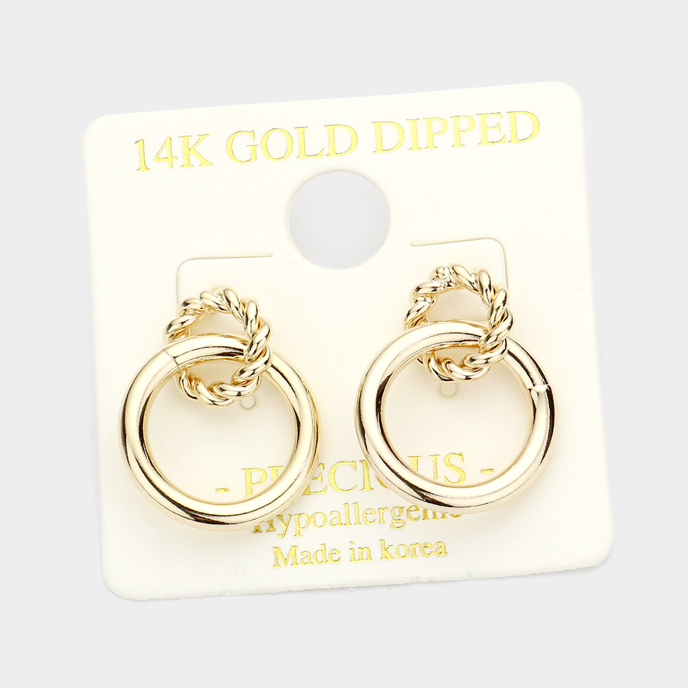 14K Gold Dipped Double Open Circle Link Dangle Earrings