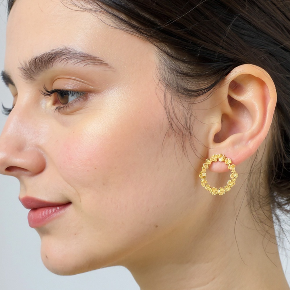 • Chic floral hoop earrings featuring delicate textured petals linked in a continuous circle. Lightweight yet eye-catching, these earrings bring a feminine and stylish charm to casual, office, or evening wear, making them a versatile jewelry staple for any wardrobe.
