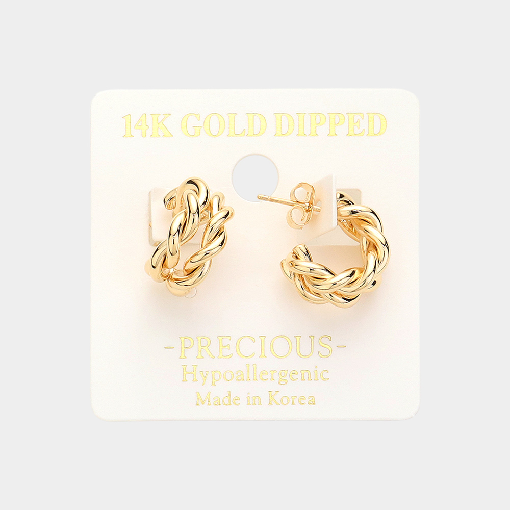 14K Gold Dipped Hypoallergenic Split Breaded Metal Hoop Earrings