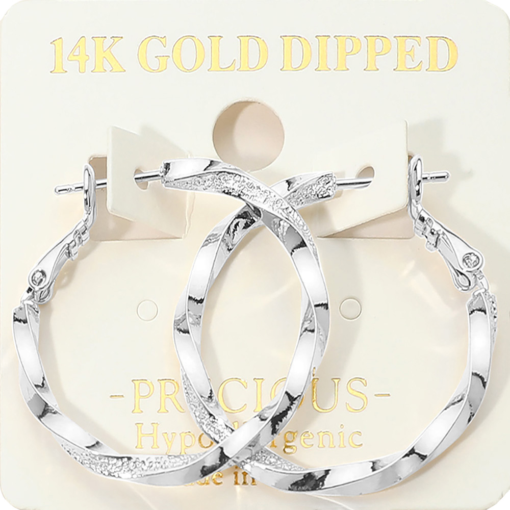 14K Gold Dipped Hypoallergenic Textured Twisted Hoop Earrings