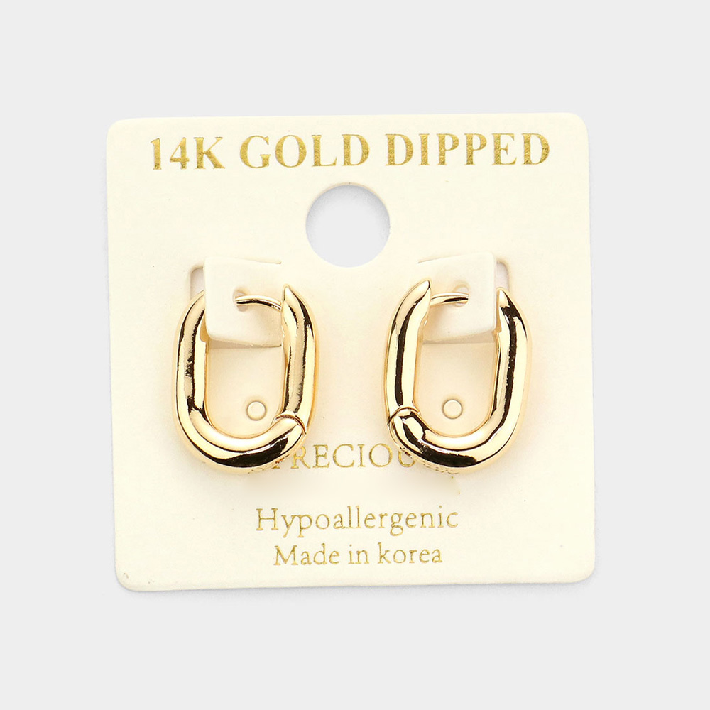 14K Gold Dipped Metal Oval Hoop Huggie Earrings