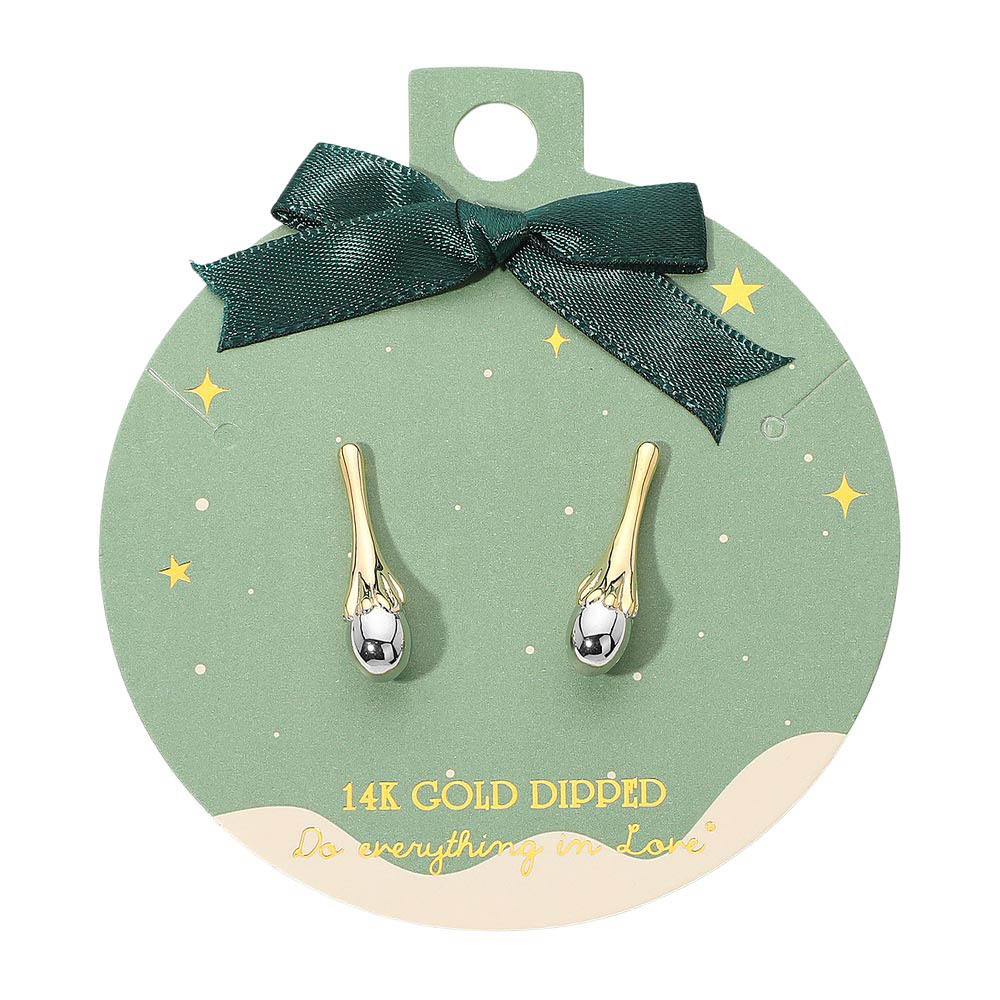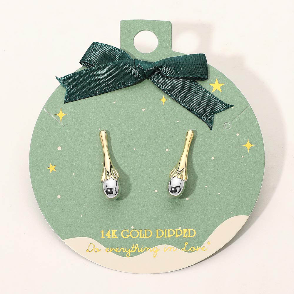 Details • Size : 0.25" X 1" • Post Back • Modern sculpted teardrop stud earrings featuring a sleek elongated top and a polished rounded drop for a clean, contemporary look. Perfect for gifting, everyday wear, or adding a minimalist accent to seasonal outfits. A versatile accessory with a refined, artful silhouette. • Gold Dipped • Hypoallergenic • Lead and Nickel Compliant • Made In Korea