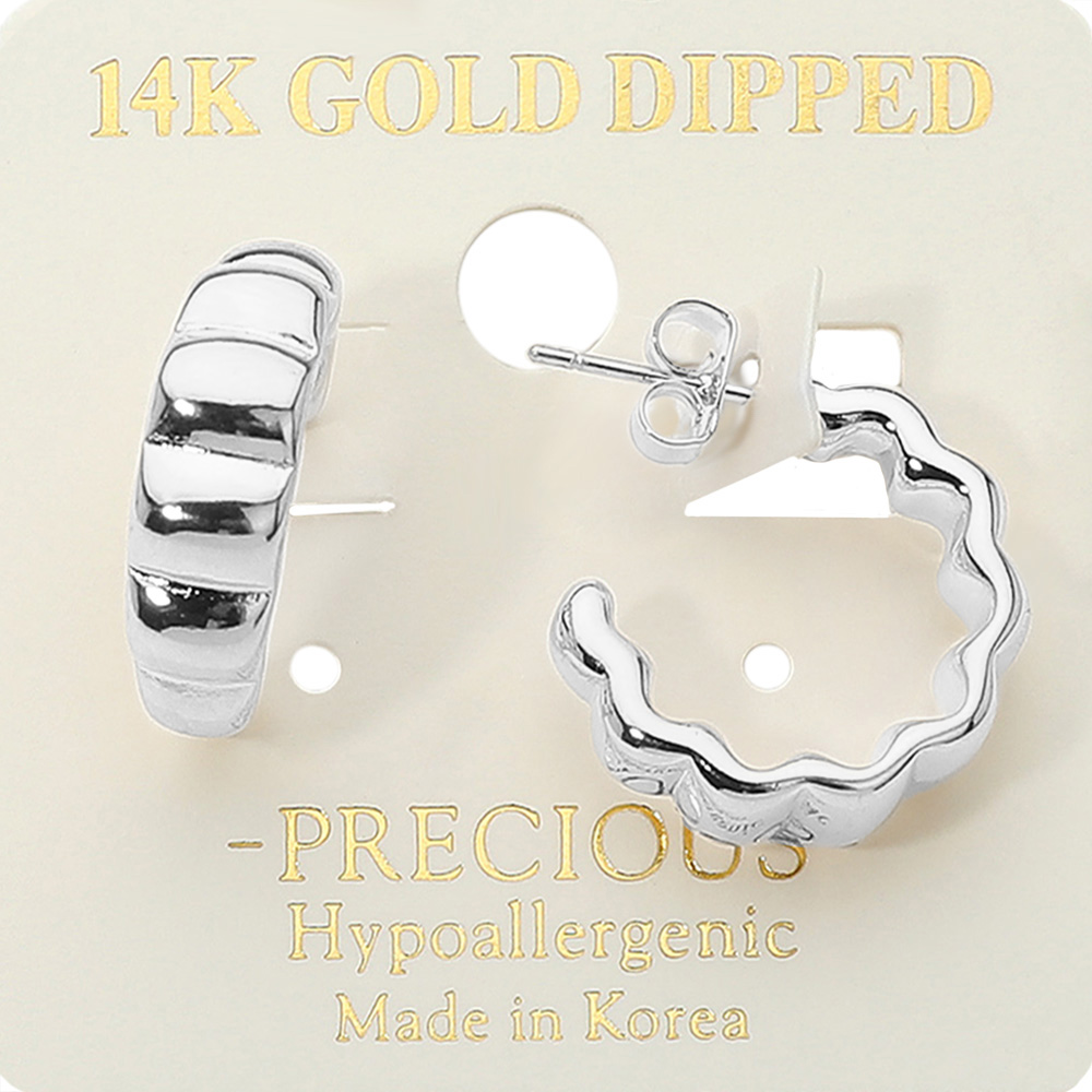 • Elevate your look with these wavy textured hoop earrings, dipped in 14K gold for a radiant finish. Designed with a unique sculpted shape, they’re lightweight and hypoallergenic, offering timeless elegance and everyday comfort for any outfit or occasion.