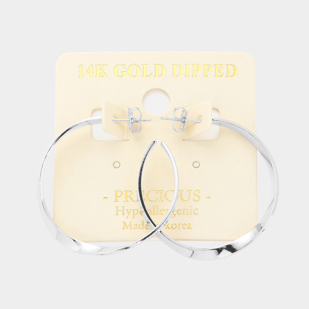 14K White Gold Dipped Twisted Metal Hoop Earrings