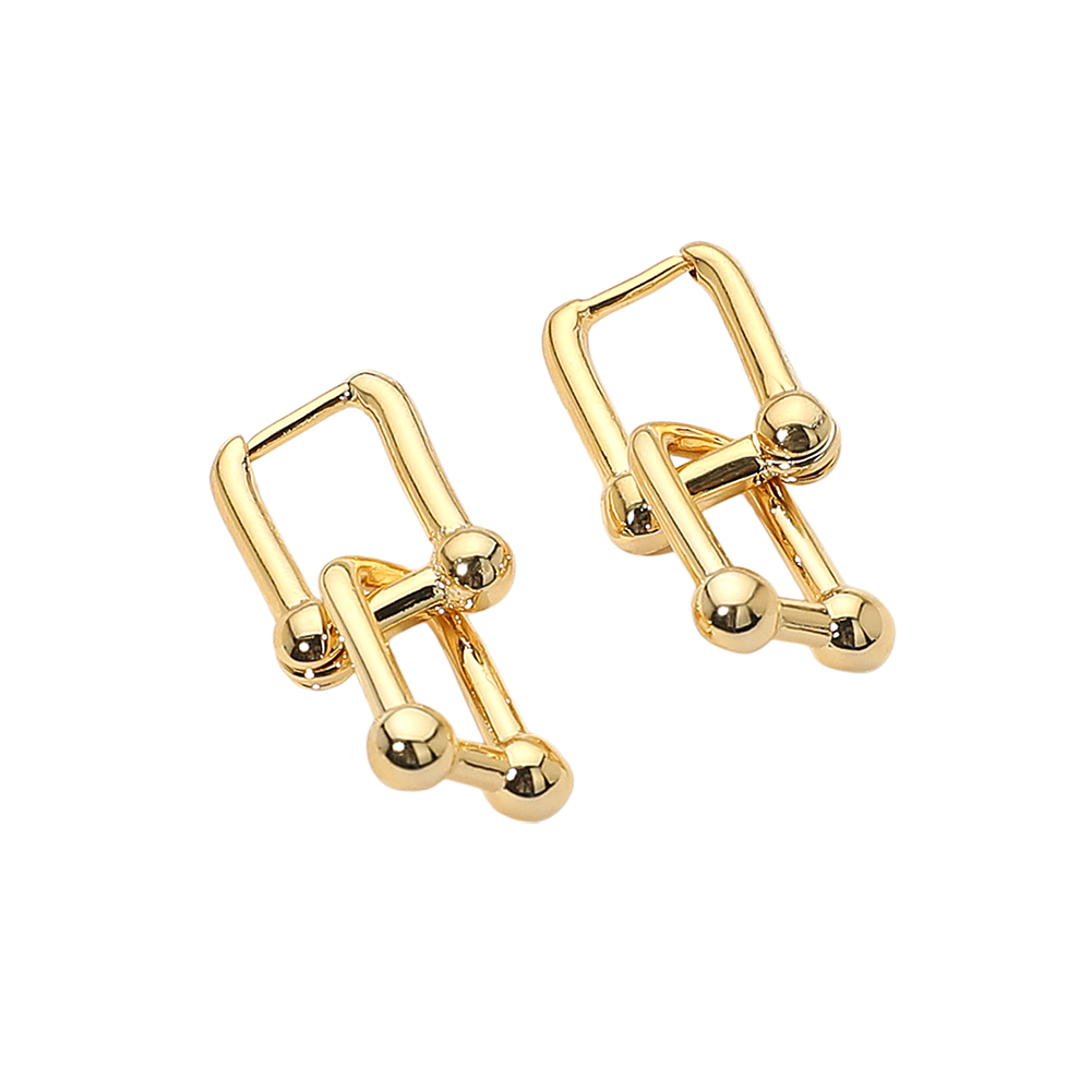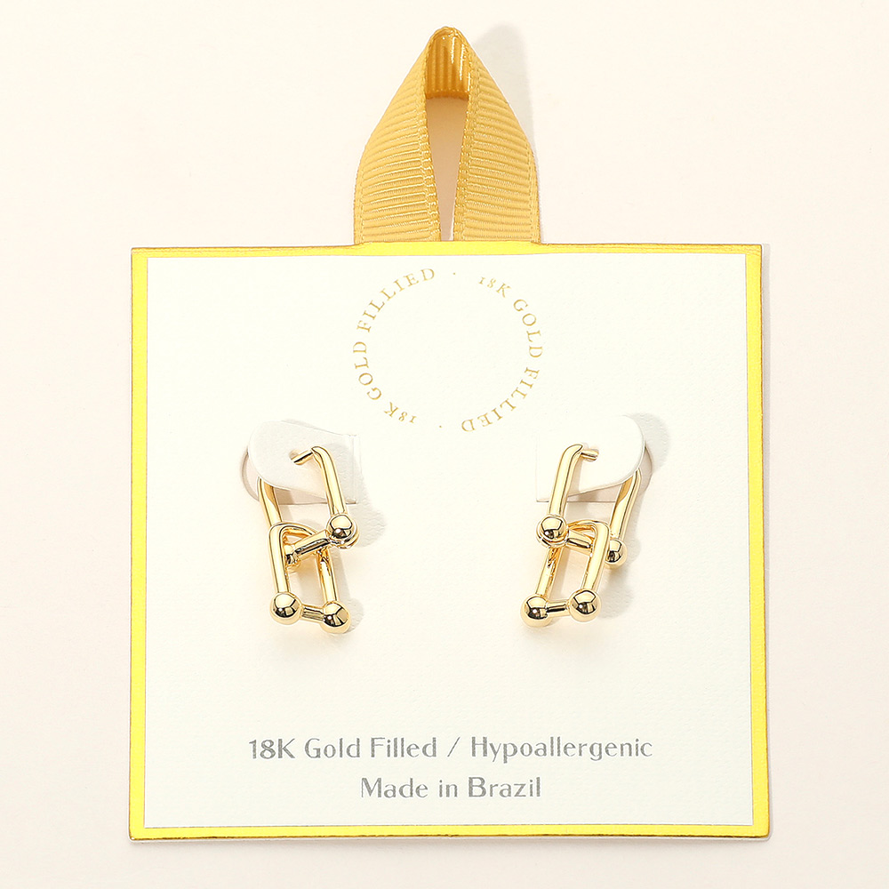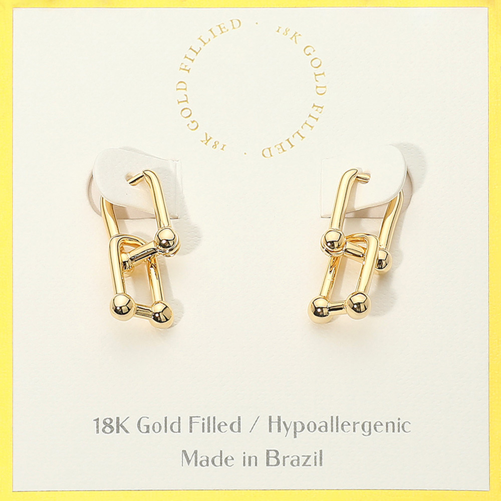 Details • Size : 0.3" X 1" • Huggie Back • Unique geometric link earrings featuring bold interconnected shapes with a sleek finish. Perfect for adding a touch of modern sophistication to everyday looks or dressing up for special occasions, these earrings bring chic statement style with versatile appeal. • Gold Filled • Hypoallergenic • Lead and Nickel Compliant • Made In Brazil