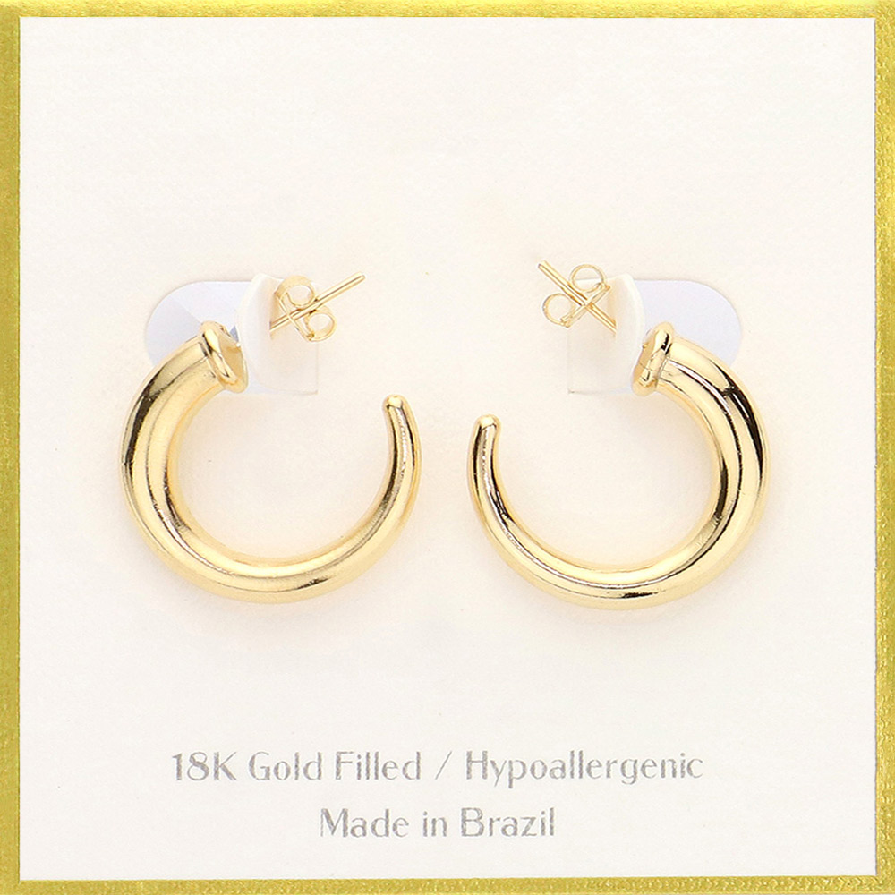 Details • Size : 0.9" X 0.9" • Post Back • Discover these bold 18K gold filled thick hoop earrings, designed for a statement look while remaining lightweight and comfortable. Hypoallergenic and made in Brazil, these timeless earrings are perfect for both casual styling and elegant, elevated outfits. • Hypoallergenic • Gold Filled • Made In Brazil