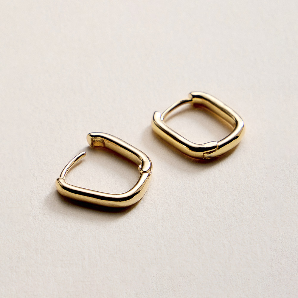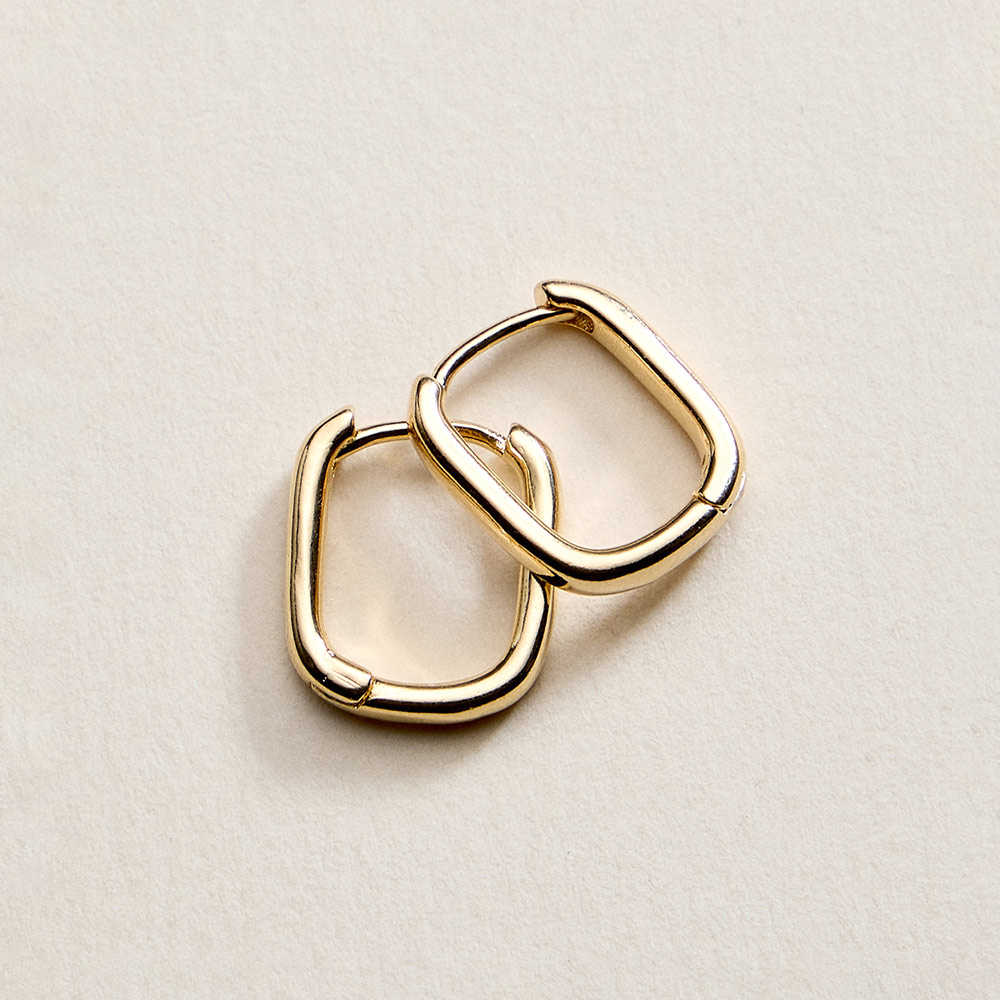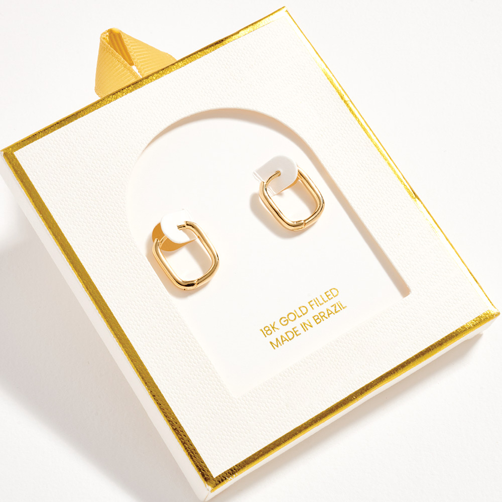 Details • Size : 0.4" X 0.6" • Huggie Back • Sleek rectangular huggie earrings designed for a clean, modern look with subtle structure. Compact and lightweight, they offer easy wear and a polished finish that pairs effortlessly with casual or refined outfits, perfect for daily styling, layering, or a minimalist jewelry collection. • Lead and Nickel Compliant • Hypoallergenic • Gold Filled • Made In Brazil