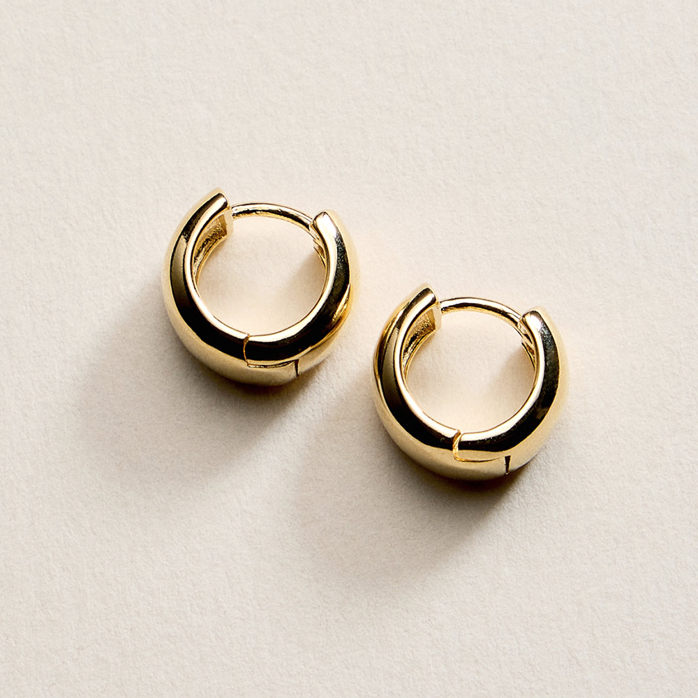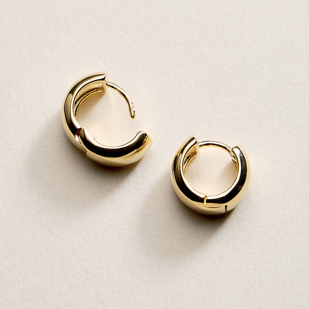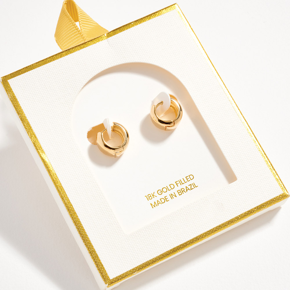Details • Size : 0.4" X 0.4" X 0.25" • Huggie Back • Petite hinged mini hoop earrings designed with a sleek rounded profile for effortless everyday styling. Lightweight and easy to wear, these compact hoops are ideal for minimalist looks, ear stacking, or all-day comfort. A versatile jewelry essential that pairs seamlessly with casual outfits or elevated ensembles, perfect for daily wear collections and gifting. • Gold Filled • Hypoallergenic • Lead and Nickel Compliant • Made In Brazil
