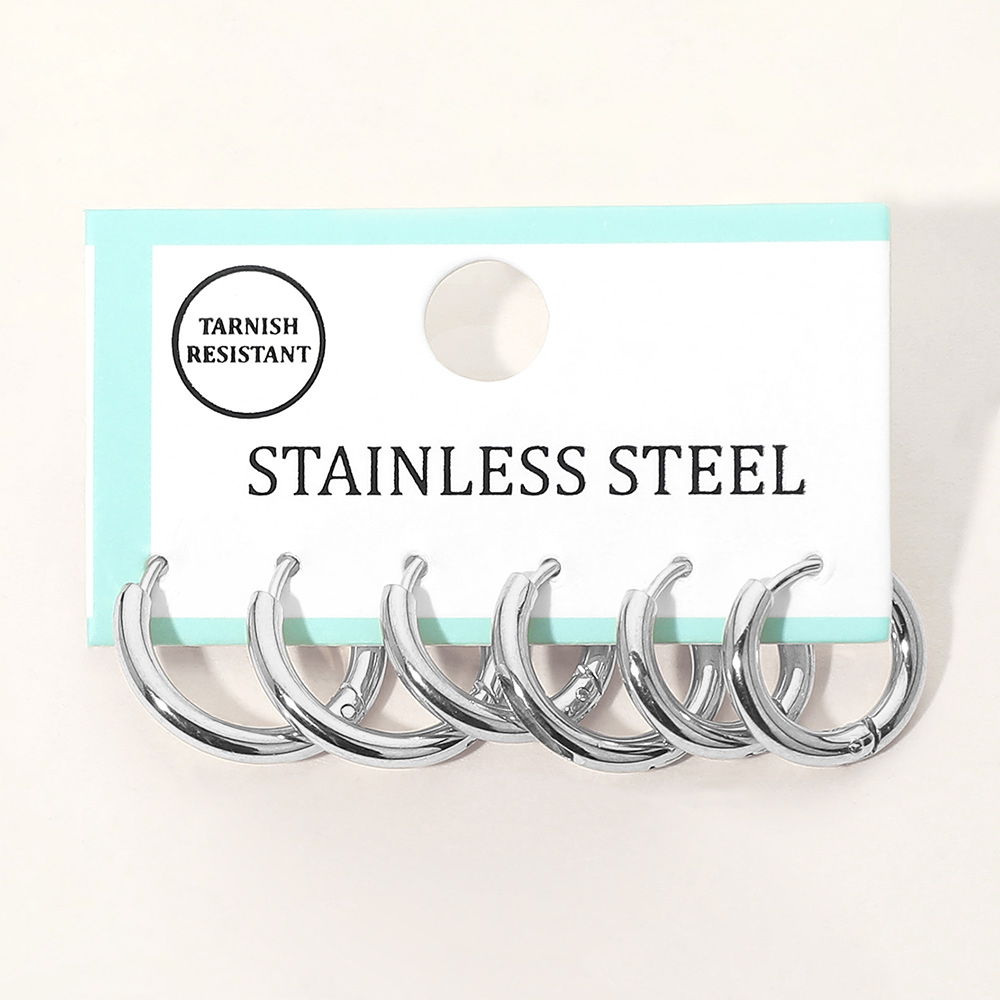 3Pairs - Stainless Steel Classic Huggie Hoop Earring Set