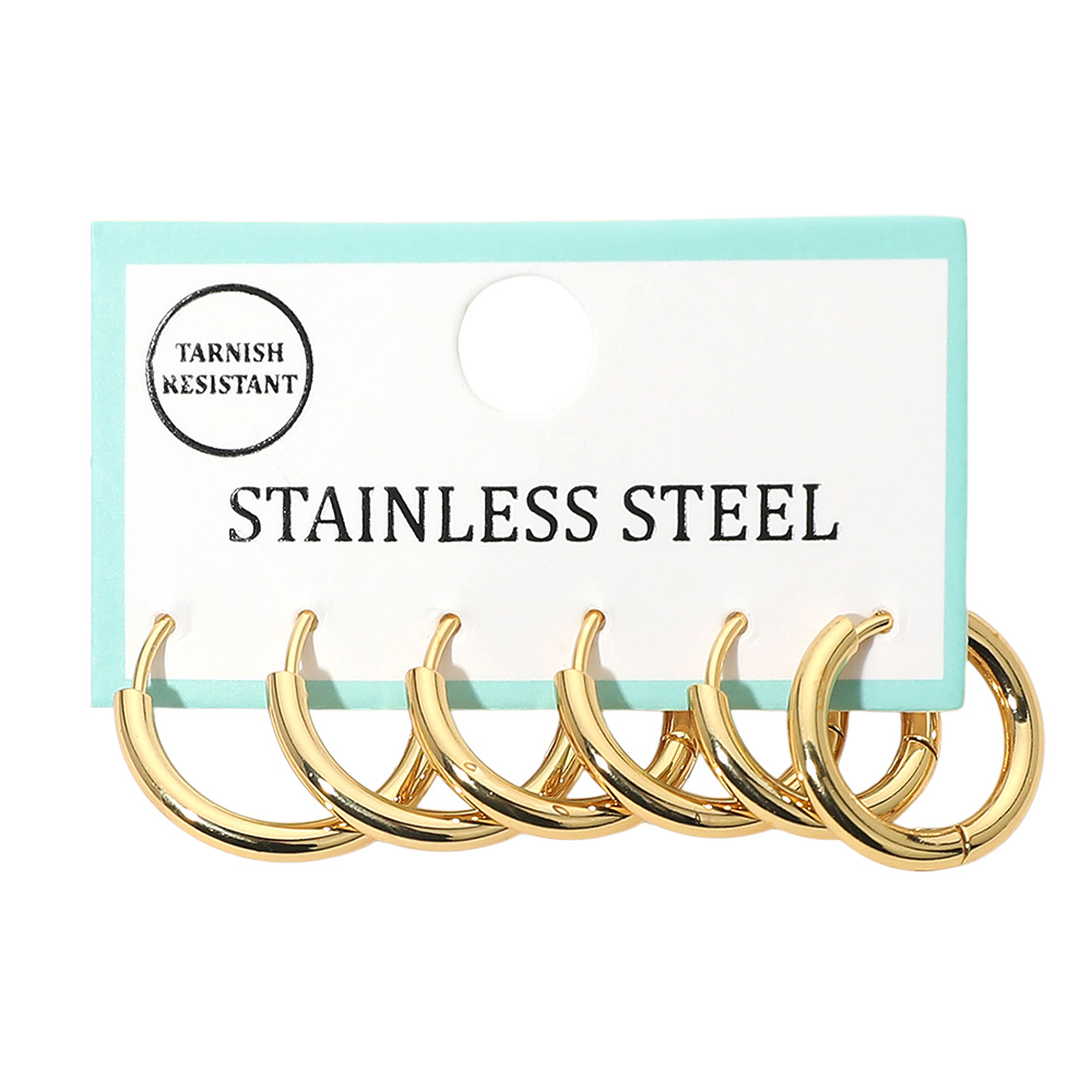3Pairs - Stainless Steel Classic Huggie Hoop Earring Set