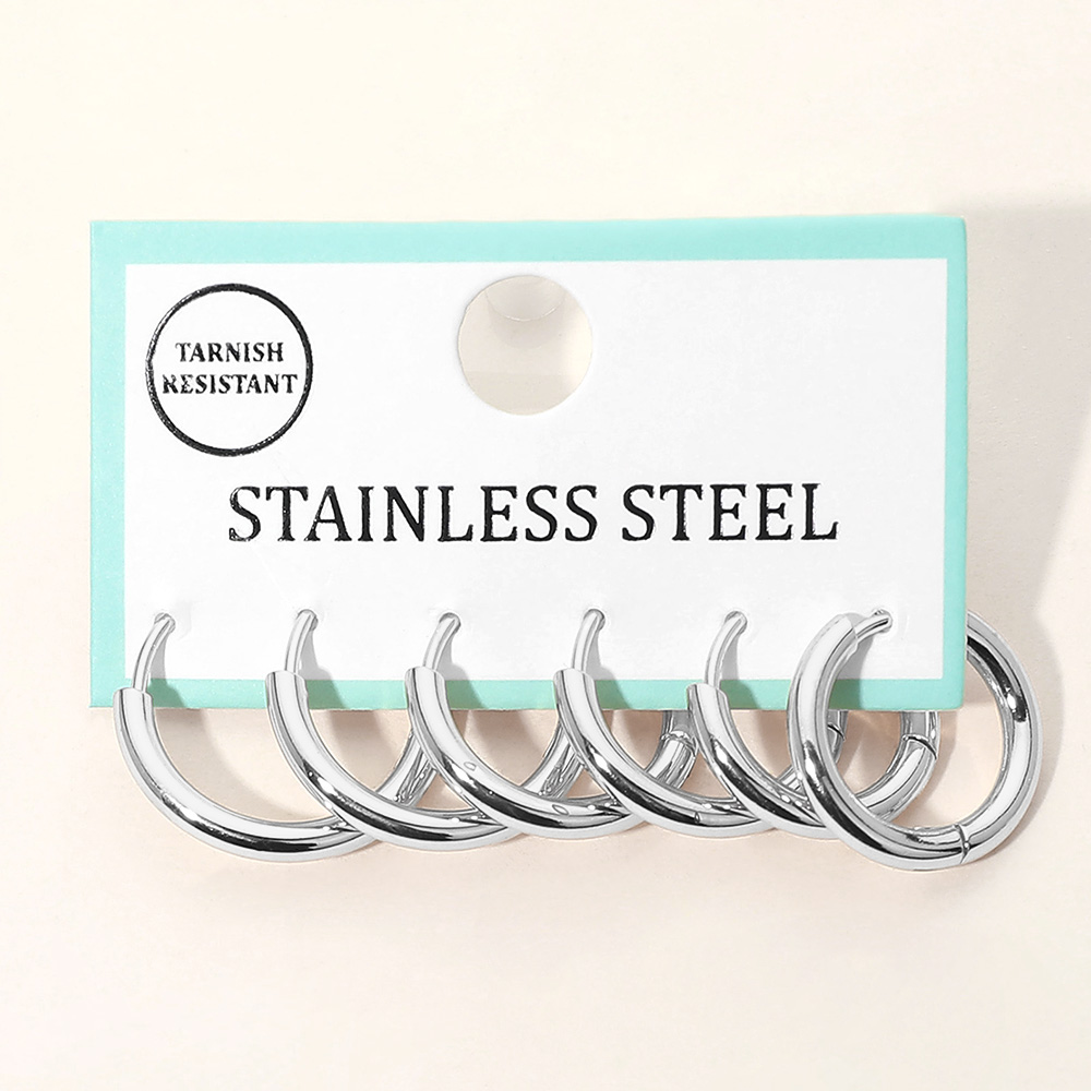 3Pairs - Stainless Steel Classic Huggie Hoop Earring Set