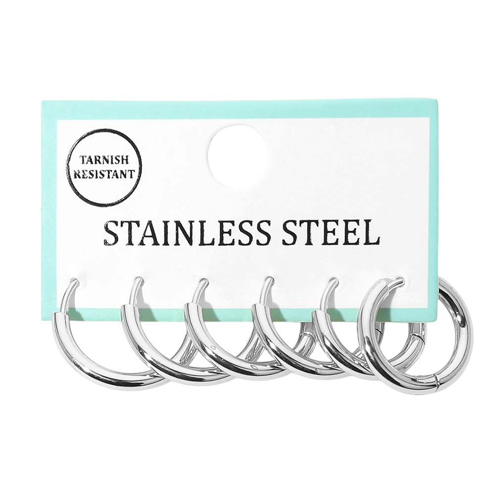 3Pairs - Stainless Steel Classic Huggie Hoop Earring Set 3Pairs - Stainless Steel Classic Huggie Hoop Earring Set