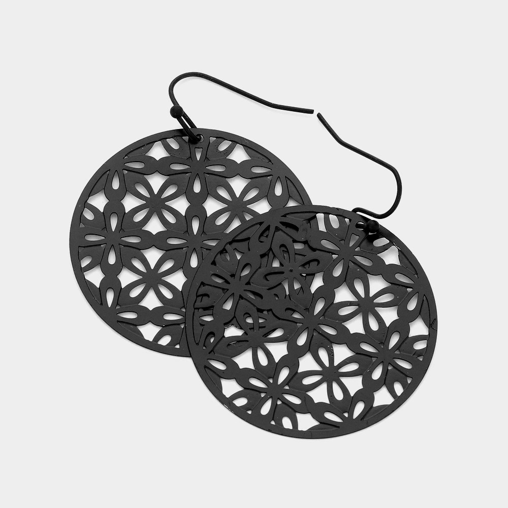 Flower Leaf Metal Filigree Round Dangle Earrings