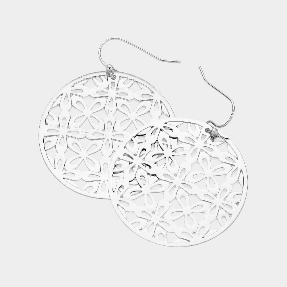 Abstract Pattern Circle Metal Filigree Dangle Earrings
