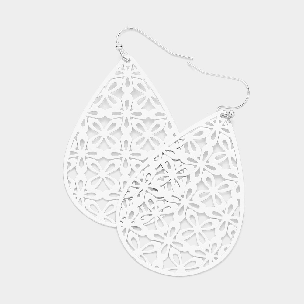 Abstract Pattern Teardrop Metal Filigree Dangle Earrings