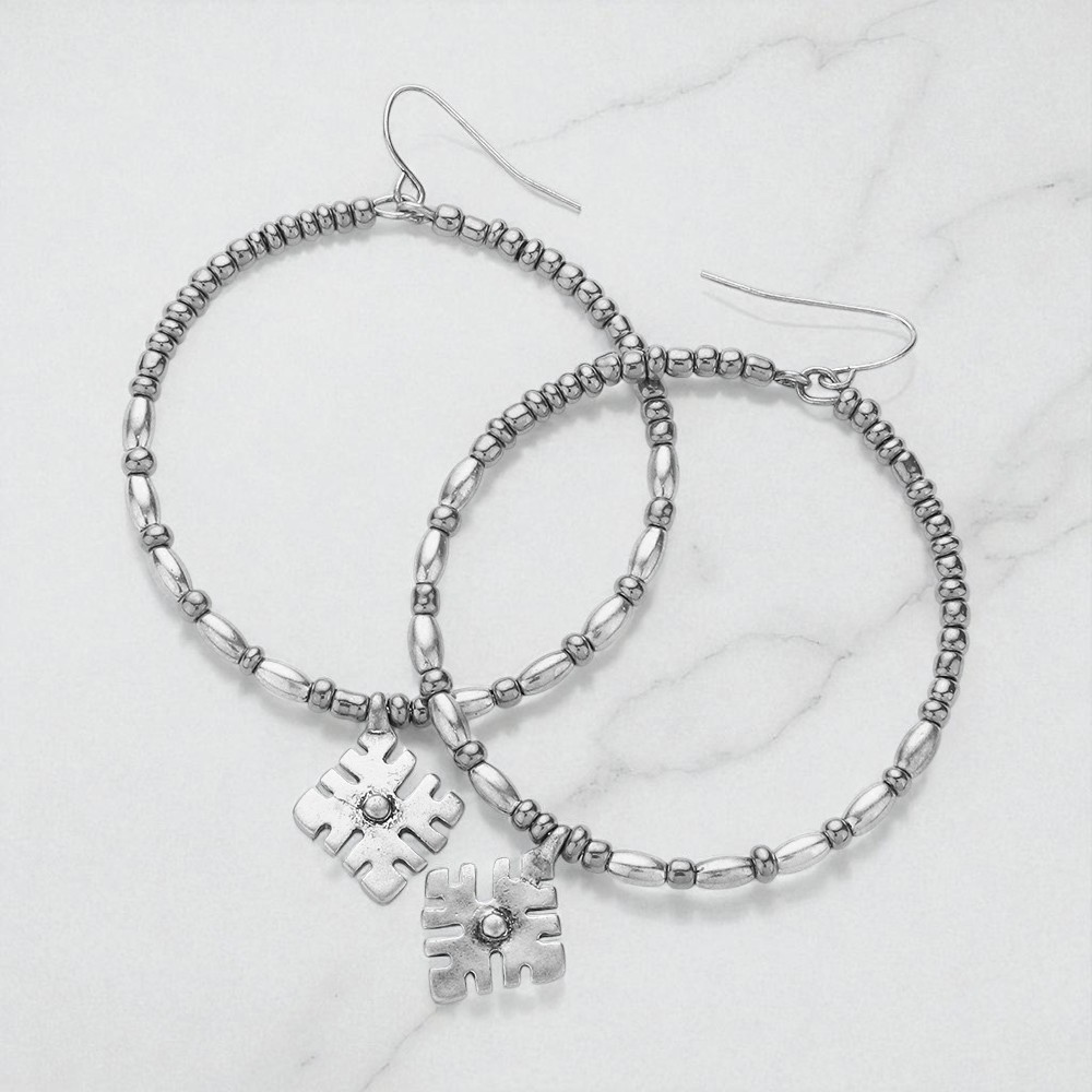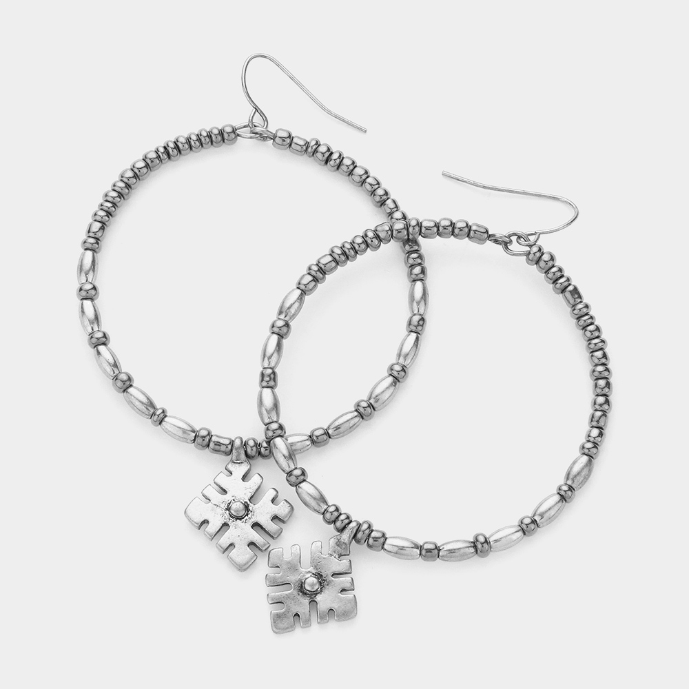Natural Stone Pointed Stone Embellished Cross Western Dangle Earrings