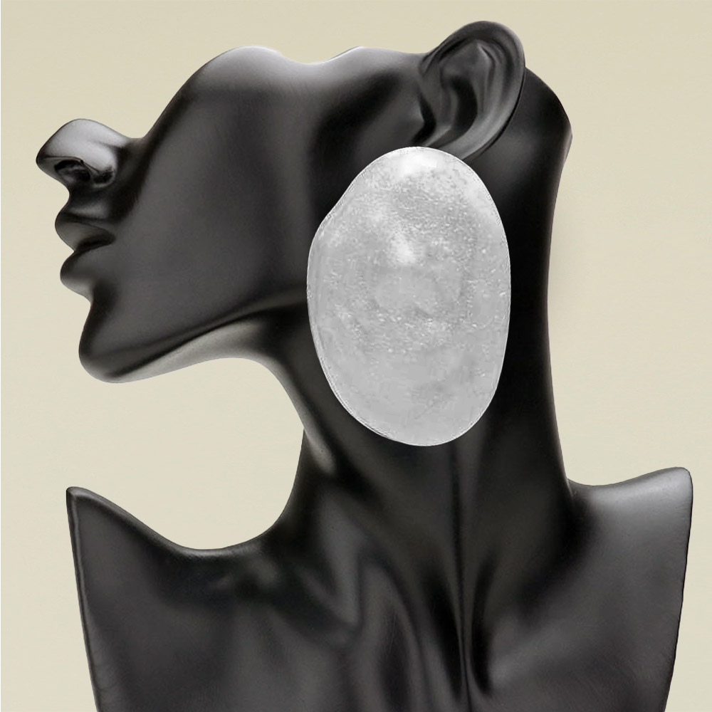 Details • Size : 2.25" X 3.5" • Post Back • Bold oval drop earrings with a smooth hammered texture and modern sculpted form. Lightweight and eye-catching, these statement earrings add a contemporary artistic touch, perfect for elevating both everyday and evening looks with effortless elegance. • Lead and Nickel Compliant