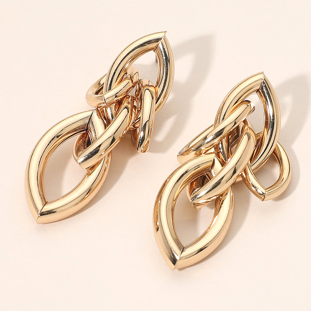 • Bold interlocking link statement earrings designed with sculptural movement and a polished finish. This modern silhouette delivers eye-catching dimension while remaining wearable for everyday styling, gifting, and boutique assortments seeking elevated, trend-forward accessories with strong visual impact.
