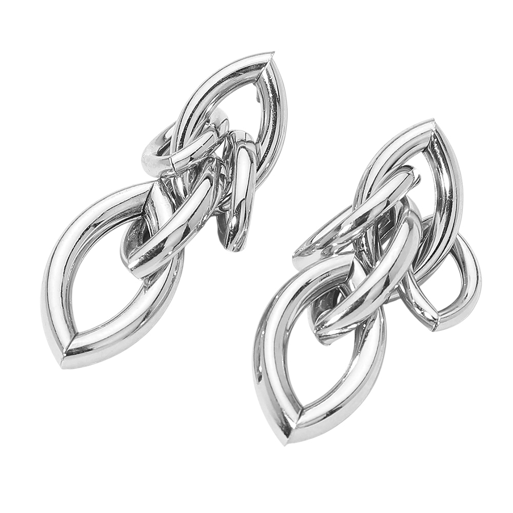 Details • Size : 0.7" X 2.25" • Post Back • Bold interlocking link statement earrings designed with sculptural movement and a polished finish. This modern silhouette delivers eye-catching dimension while remaining wearable for everyday styling, gifting, and boutique assortments seeking elevated, trend-forward accessories with strong visual impact. • Lead and Nickel Compliant