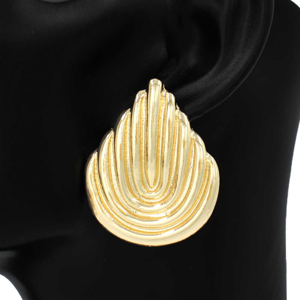 Details • Size : 1.4" X 1.7" • Post Back • Striking sculpted teardrop earrings with a textured, layered design that adds depth and drama to any outfit. These bold statement drops elevate both casual and dressy looks, offering an artistic, eye-catching accessory with modern flair and timeless elegance. • Lead and Nickel Compliant