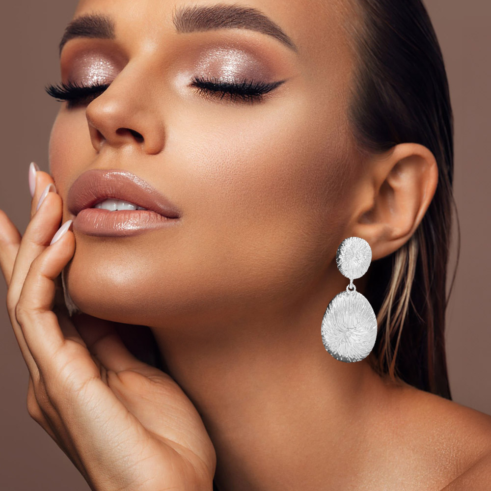 • Elevate any look with these textured disc drop earrings featuring a bold, sculptural silhouette that adds modern artistic flair. Their dimensional design creates eye-catching movement, making them a standout accessory perfect for both everyday outfits and elevated occasions.