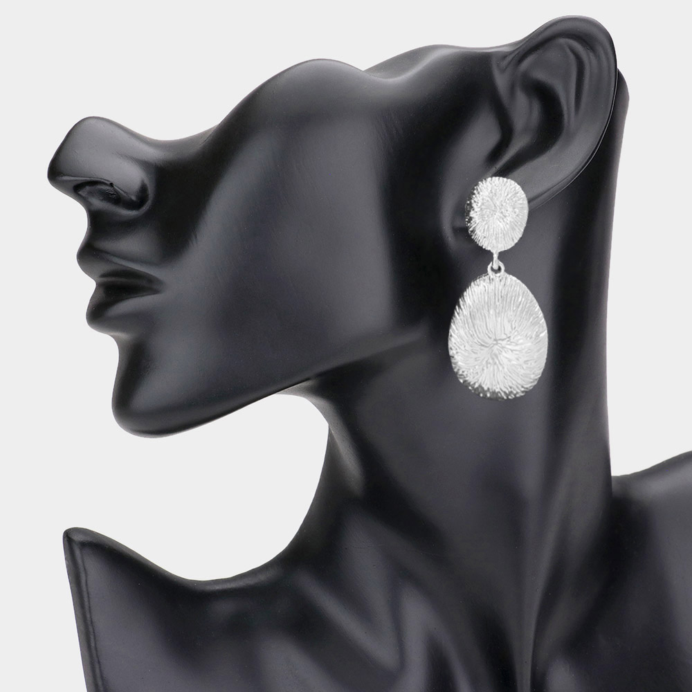 Bold Textured Metal Disc Drop Dangle Earrings