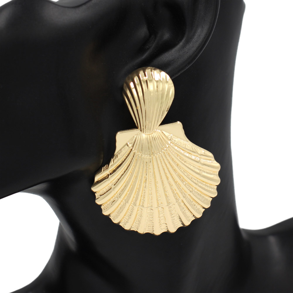 Bold Textured Metal Shell Statement Earrings Bold Textured Metal Shell Statement Earrings