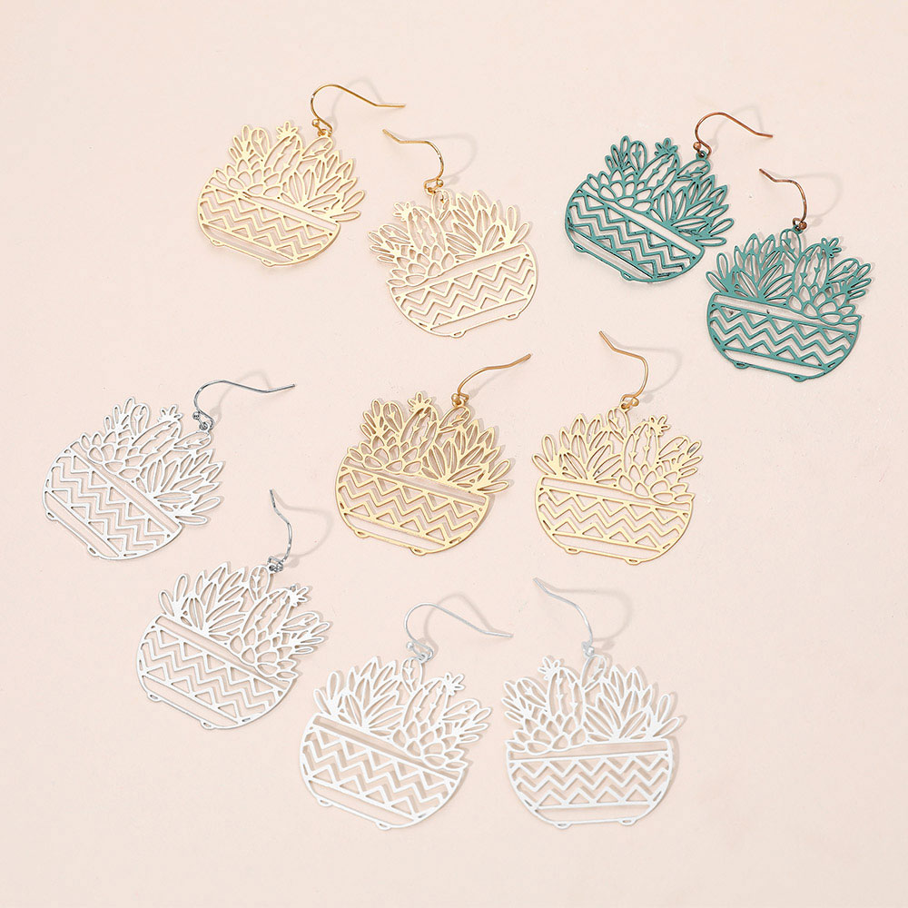Brass Metal Botanical Planter Cutout Dangle Earrings Brass Metal Botanical Planter Cutout Dangle Earrings Brass Metal Botanical Planter Cutout Dangle Earrings