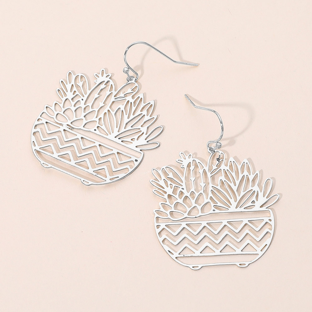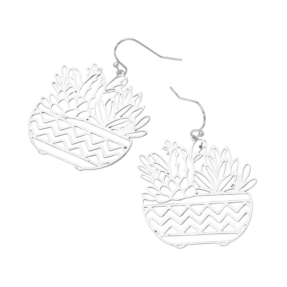 Brass Metal Botanical Planter Cutout Dangle Earrings