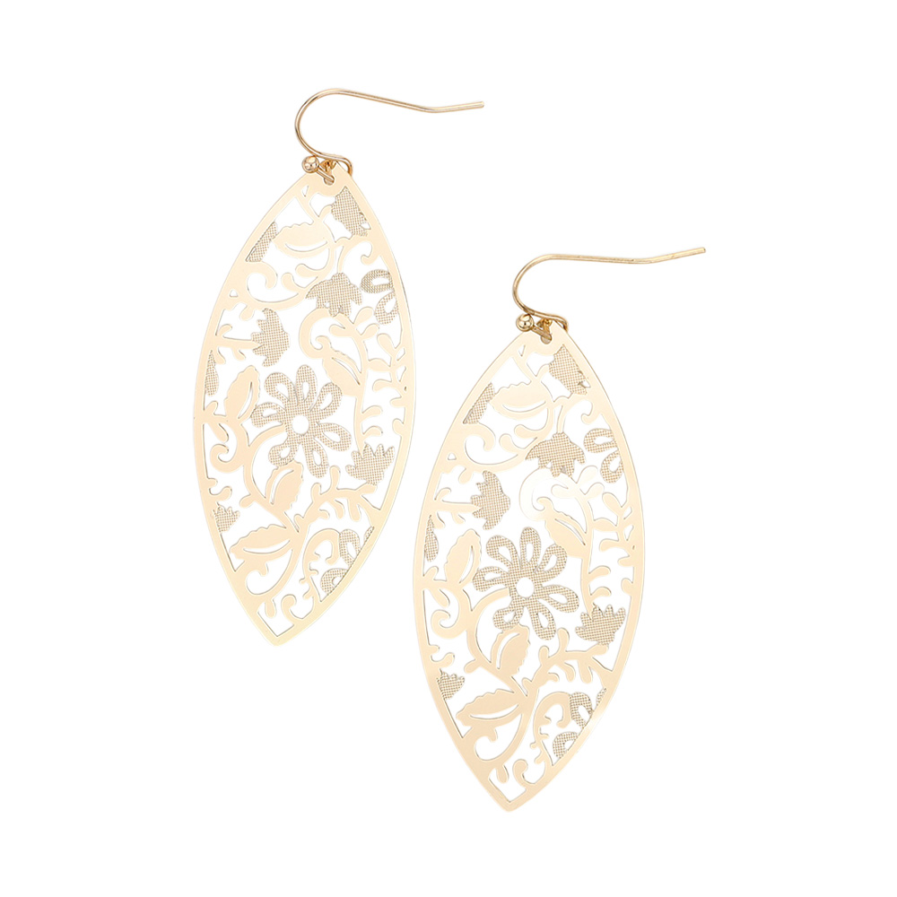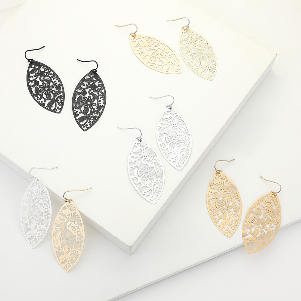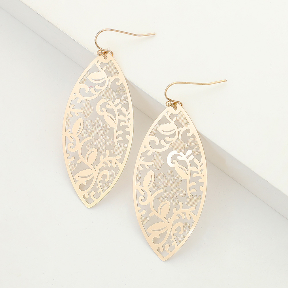 Rhinestone Embellished Metal Fishbone Dangle Earrings