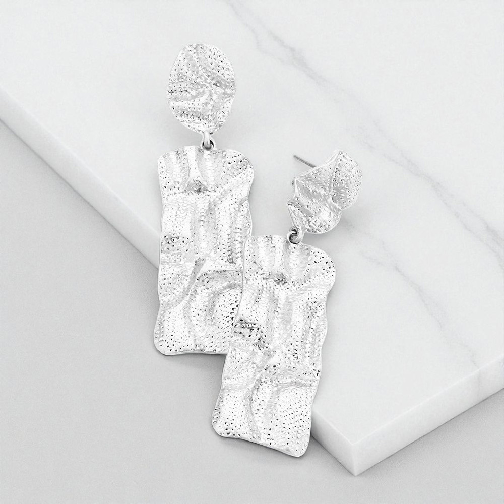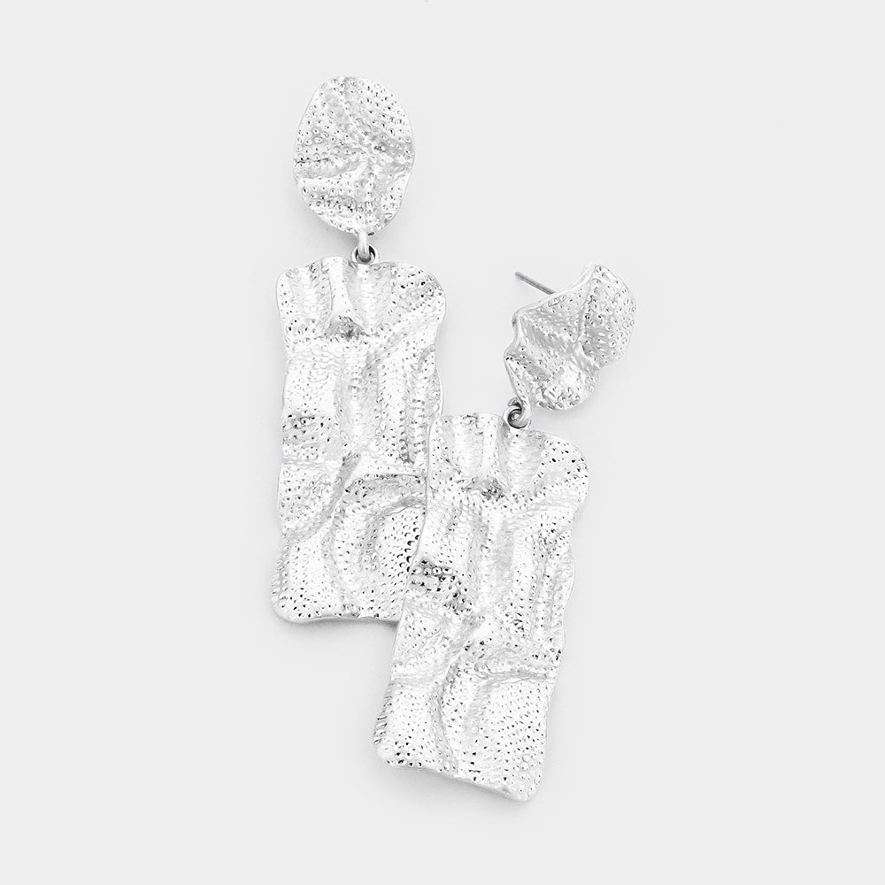 Crumbled Rectangle Metal Post Earrings