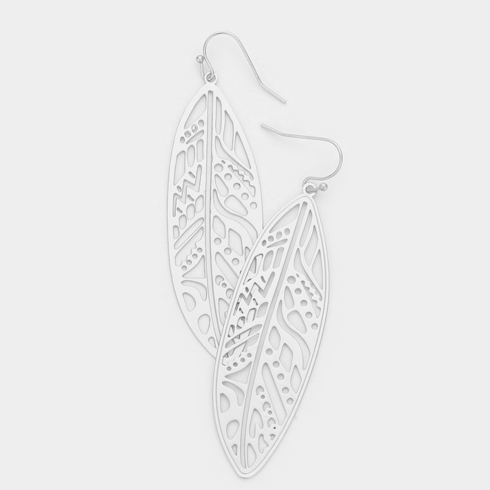 Brass Matte Metal Filigree Teardrop Dangle Earrings