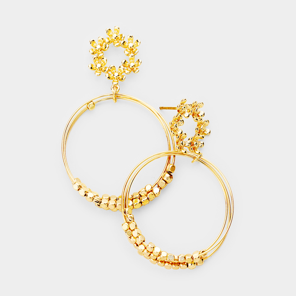 Beaded Ball Center Metal Petal Flower Adjustable Ring